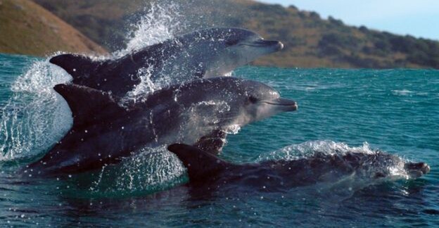 The dolphin’s high intelligence was also shown with adult dolphins teaching their calves a life lesson. They swim backwards and forward through the fronds of a rare plant on the bottom of the ocean, teaching their young how to be healthier by rubbing up against its anti-inflammatory fronds.